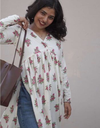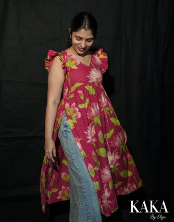 Green Floral Flare Kurthi 5337