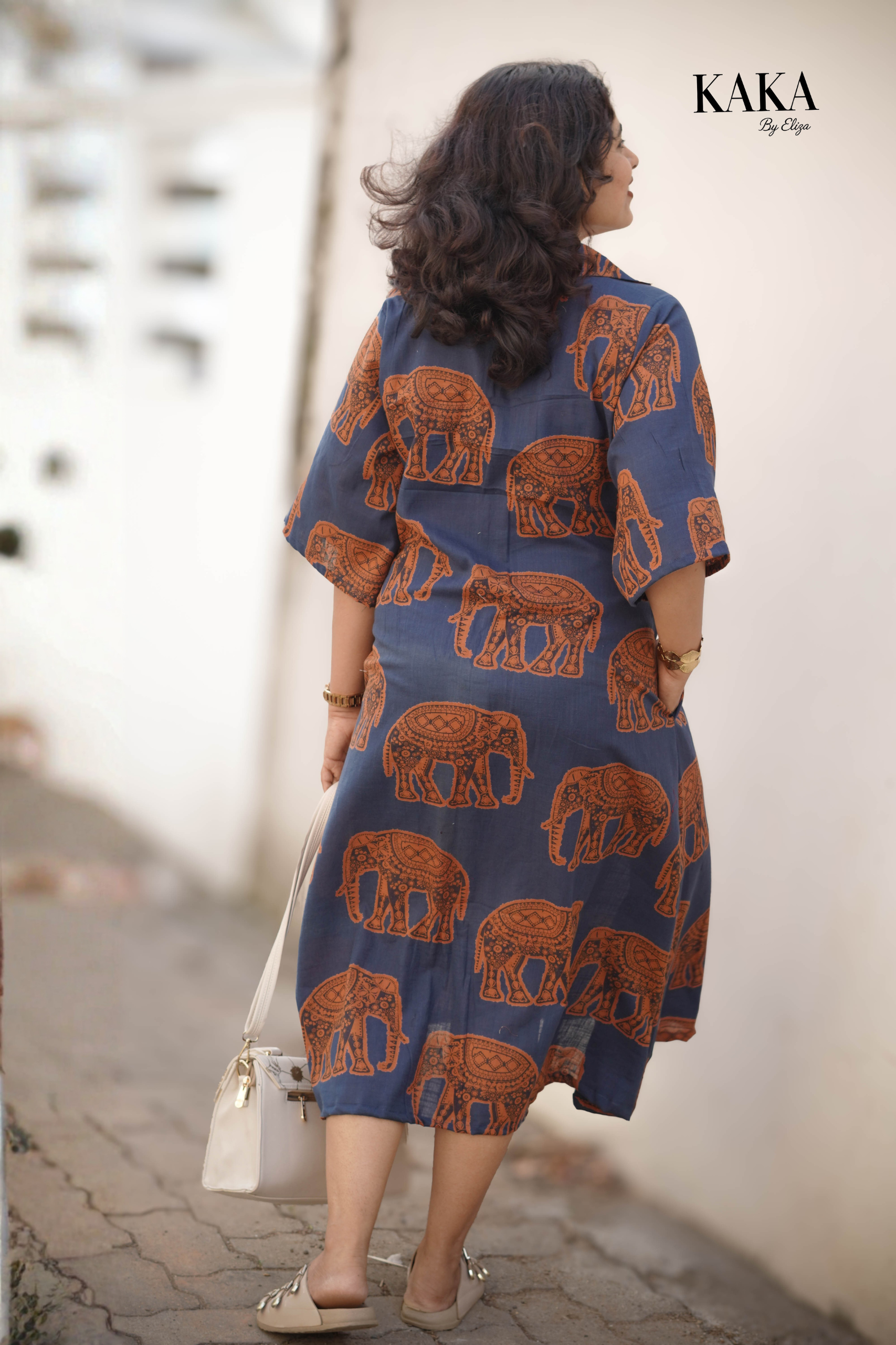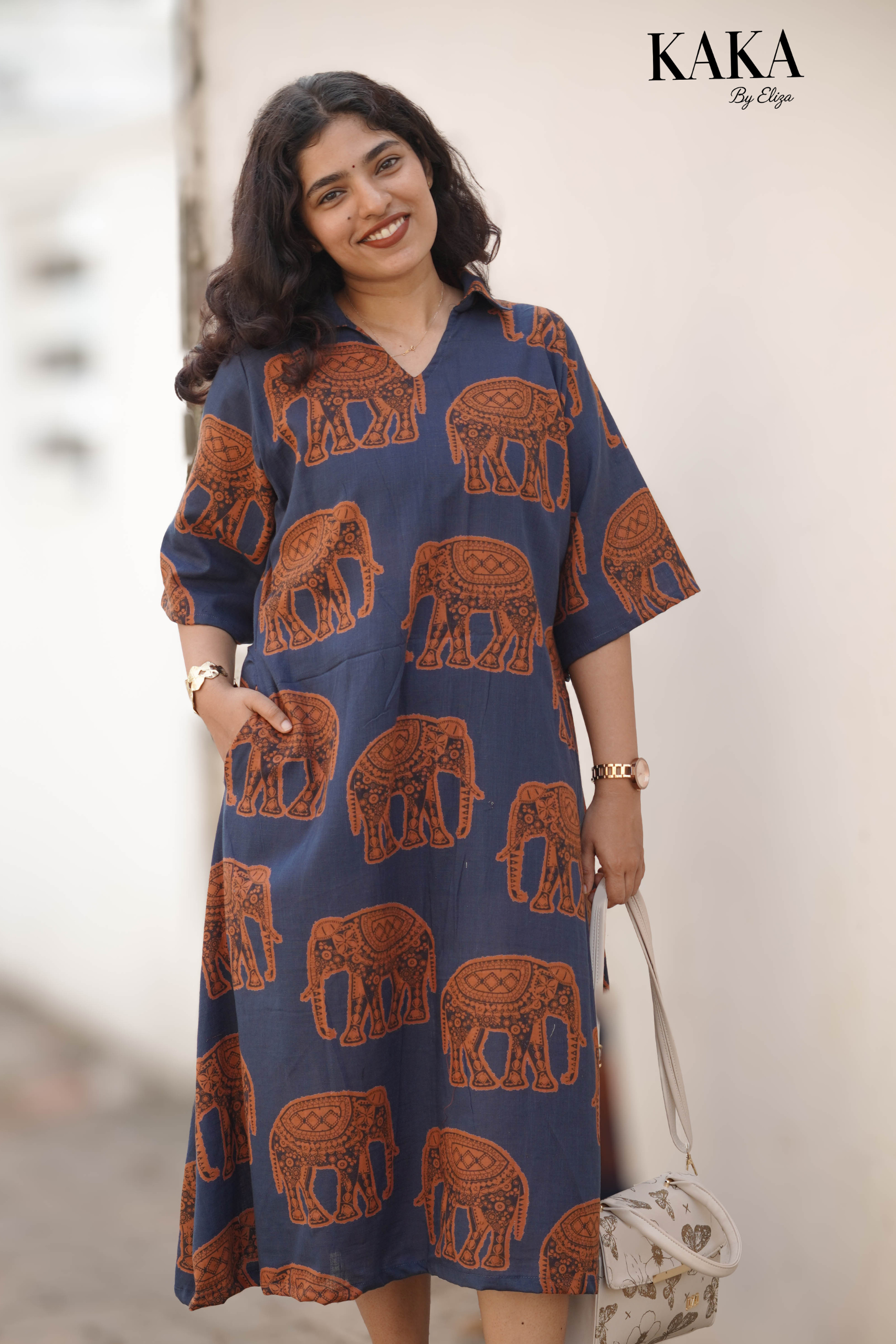 Rooted in tradition and styled for everyday elegance, the Tusker Grace Midi Dress features a rich indigo base adorned with intricate elephant motifs. Crafted from breathable cotton, this dress offers a relaxed silhouette that ensures comfort without compromising style. A perfect blend of cultural charm and modern ease, ideal for effortless daily wear.