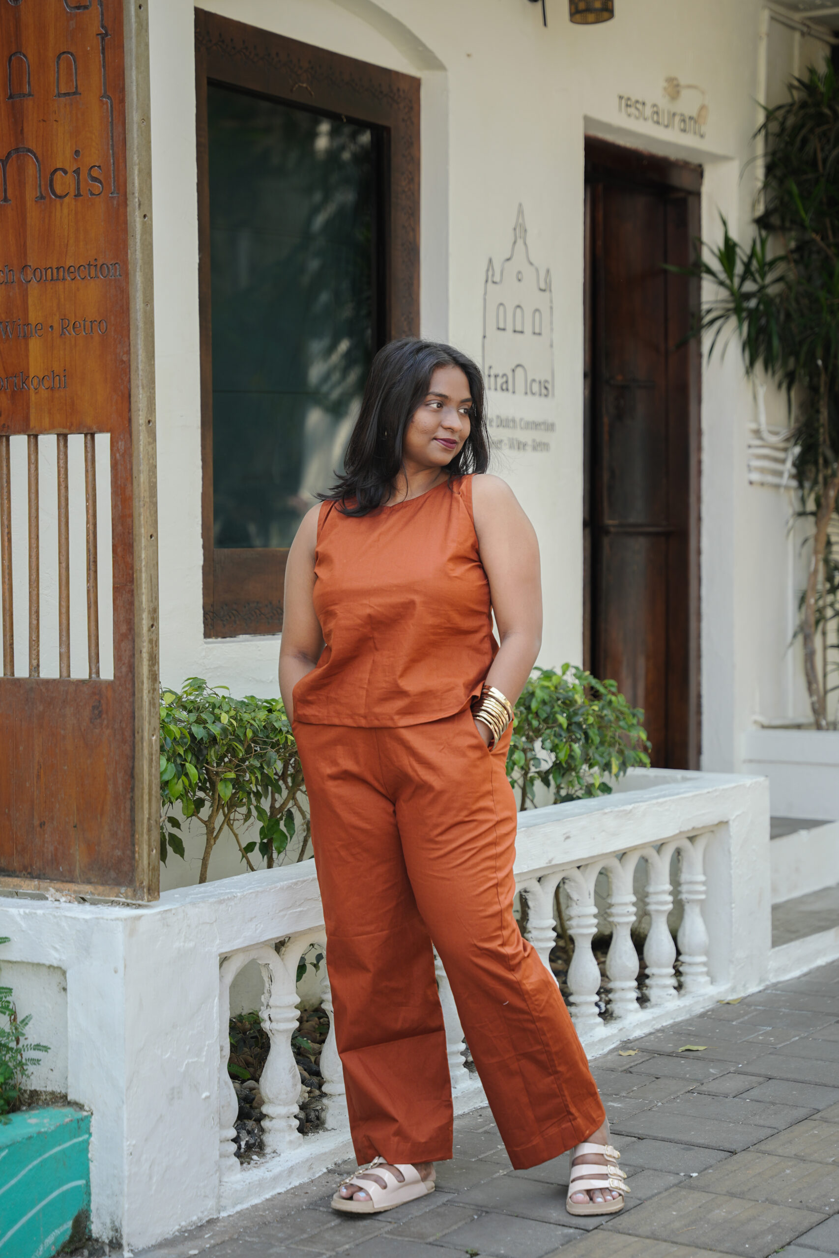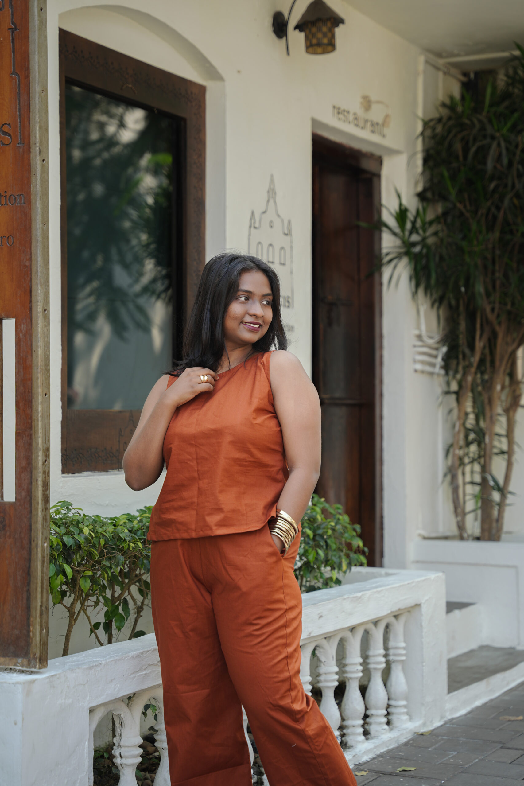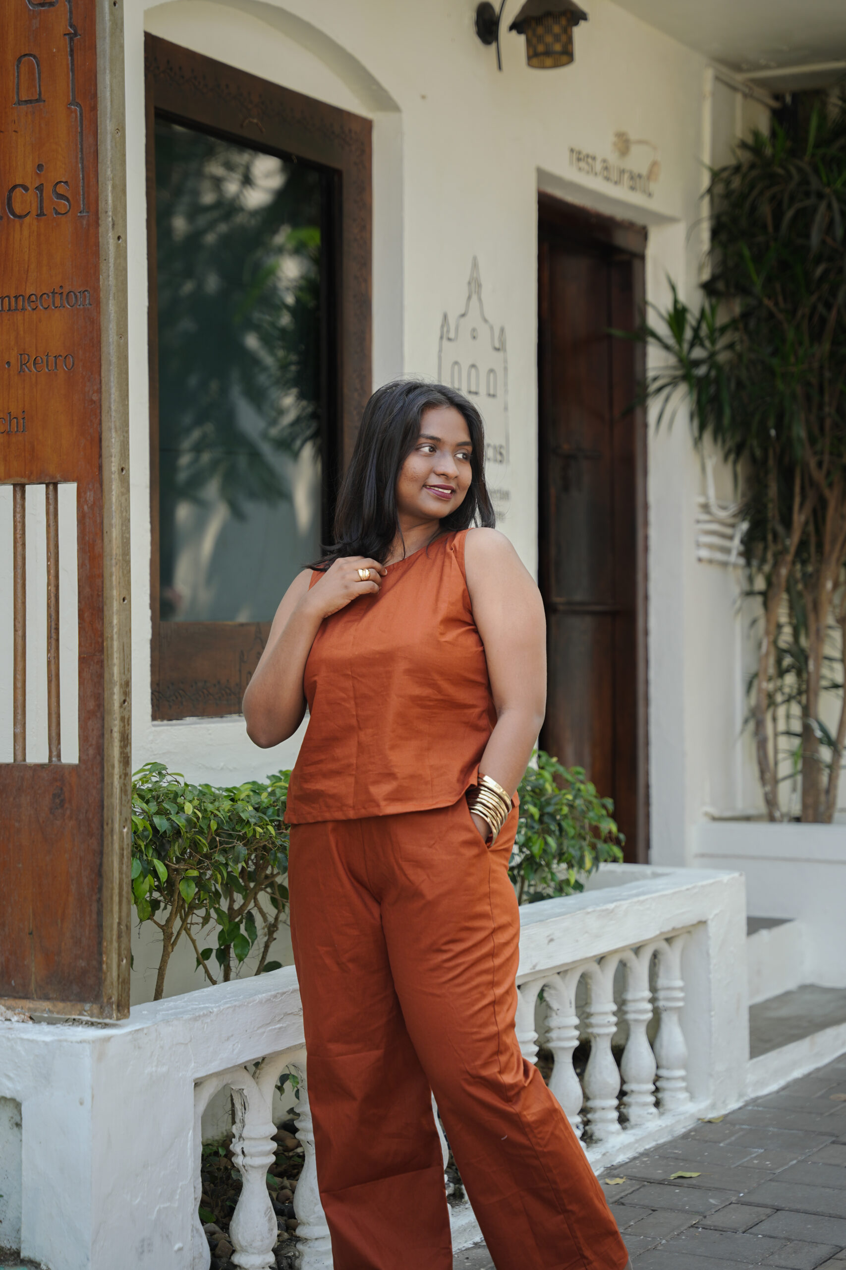 The rich terracotta hue flatters all skin tones, making it a versatile choice for brunches, workdays, travel, or minimal festive styling. Wear it as a complete set for a polished look or style each piece separately for endless outfit options.
