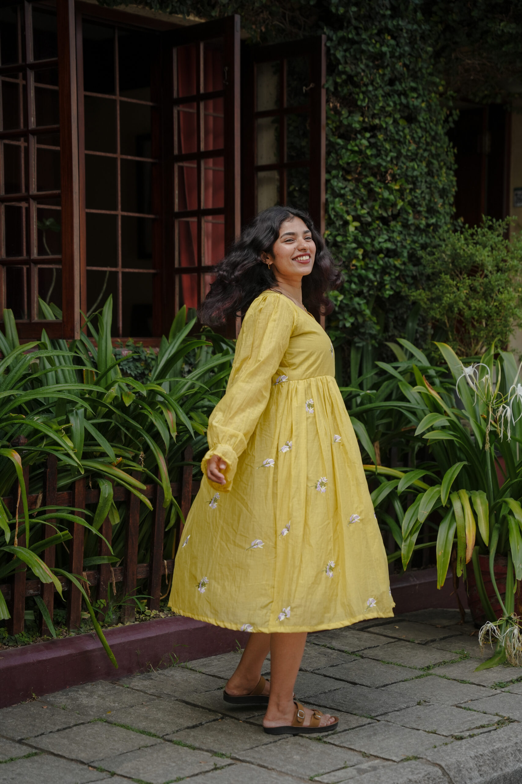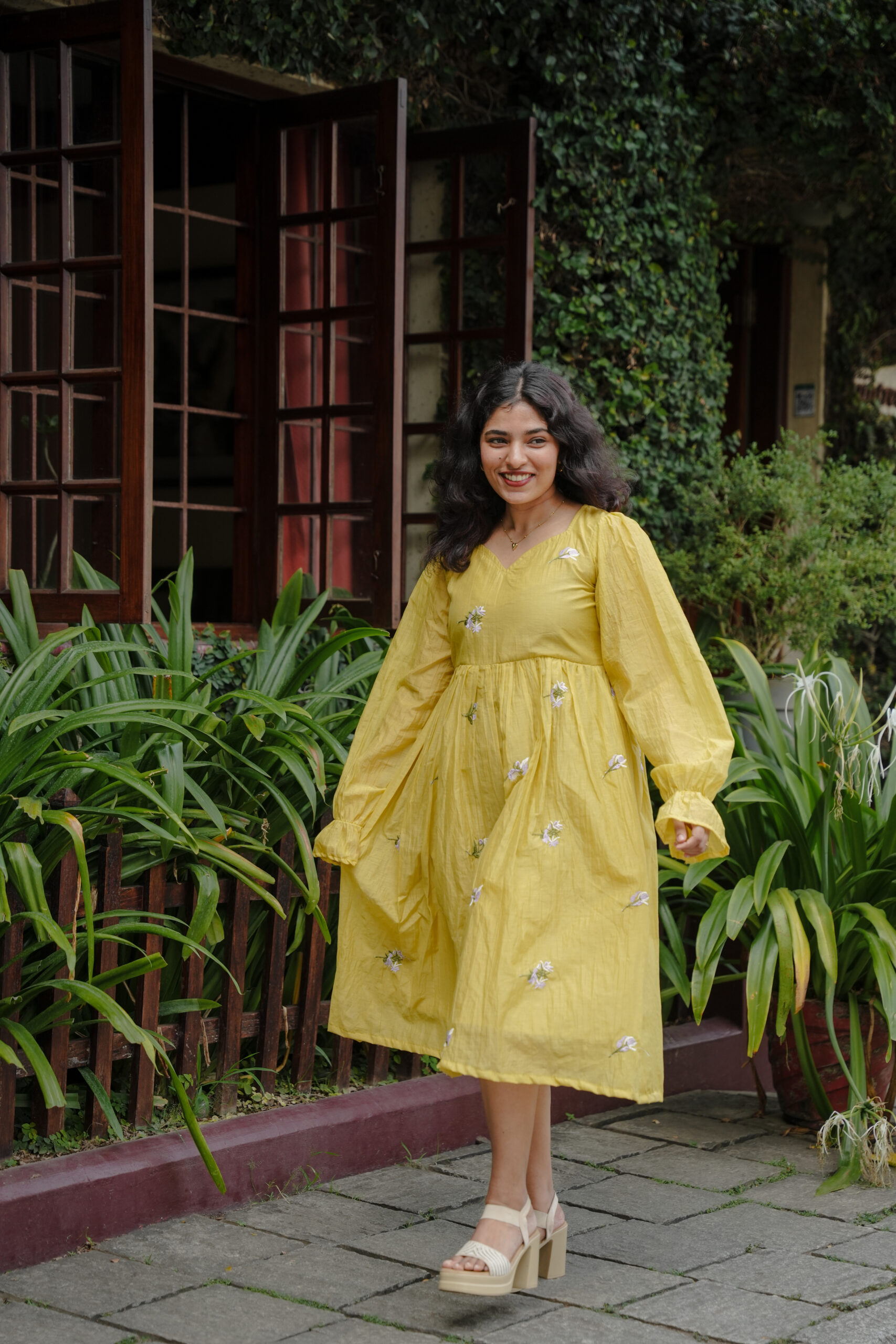 The Californian Sunshine Dress is a celebration of soft femininity and effortless charm. Crafted in a warm butter-yellow tone and adorned with delicate floral embroidery, this dress radiates freshness and grace.