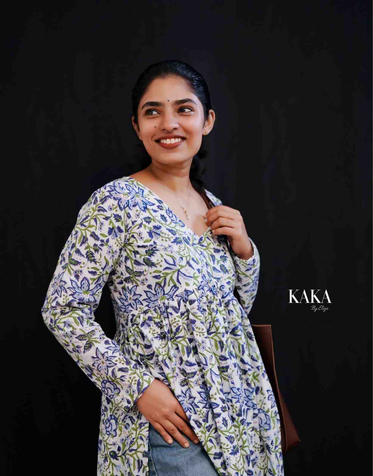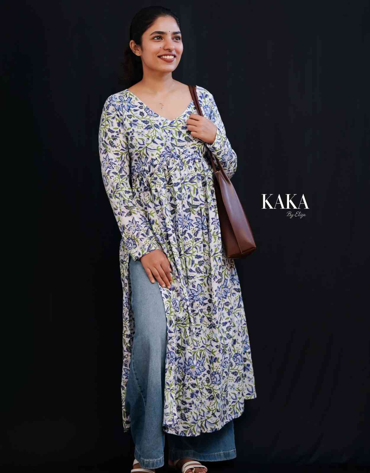 The Kurthi is a graceful blend of comfort and elegance. Crafted in a soft, breathable fabric, this long kurthi features an all-over floral print in refreshing hues of blue and green. The flattering V-neckline, full sleeves, and front slit make it a versatile pick for both casual and semi-formal days. Style it with jeans, leggings, or palazzos for a timeless ethnic-fusion look.
