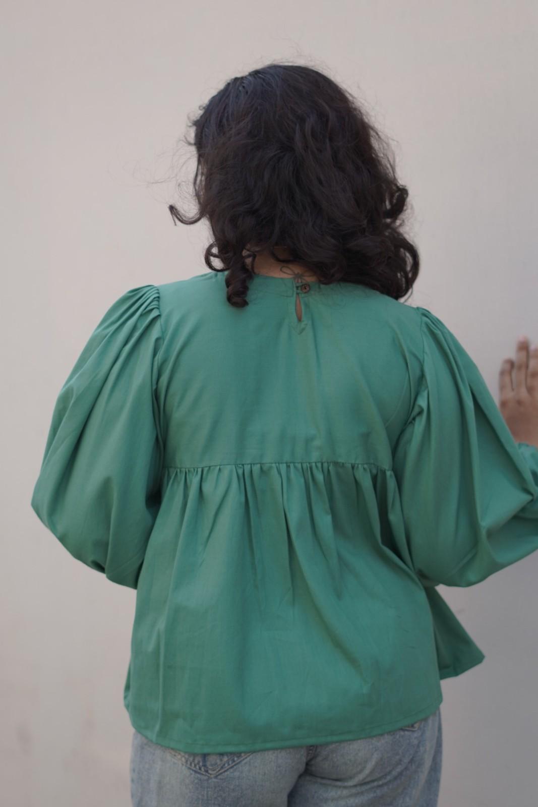 A cute and comfortable everyday top designed for effortless style. The soft emerald green shade with a relaxed peplum silhouette creates a flattering and airy look. Featuring full sleeves and a flowy fit, this top is perfect for casual outings, college, or office wear. Pair it with jeans, trousers, or skirts for a simple yet elegant outfit.