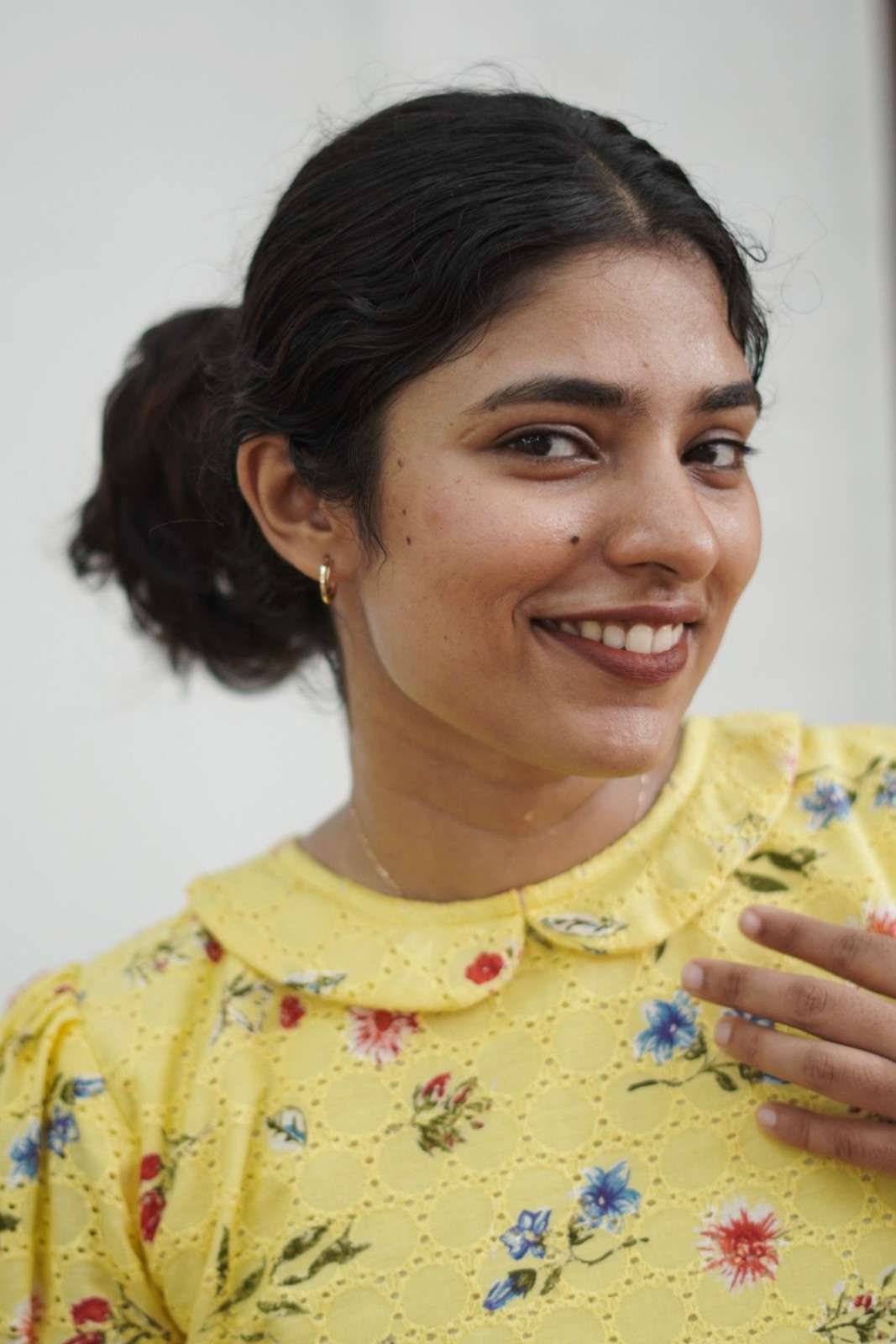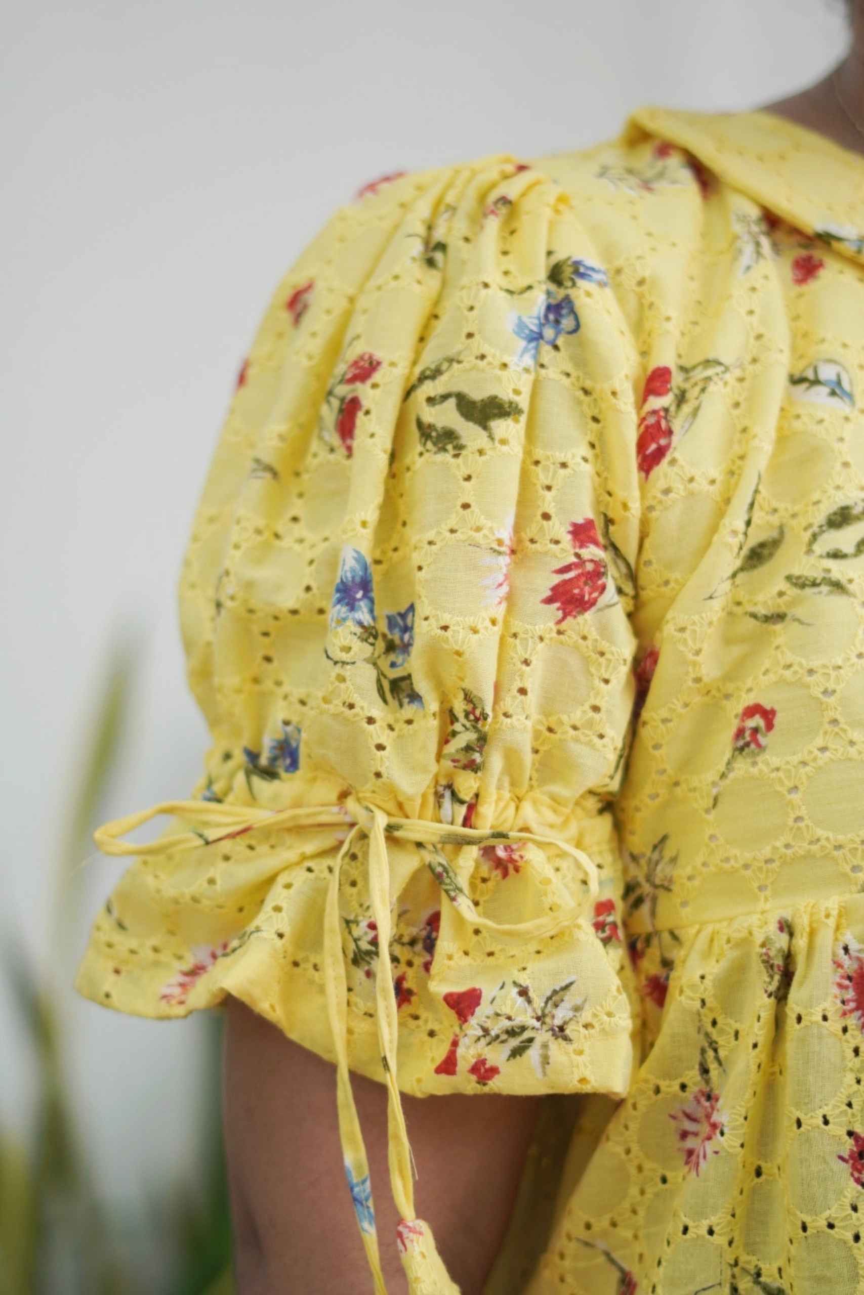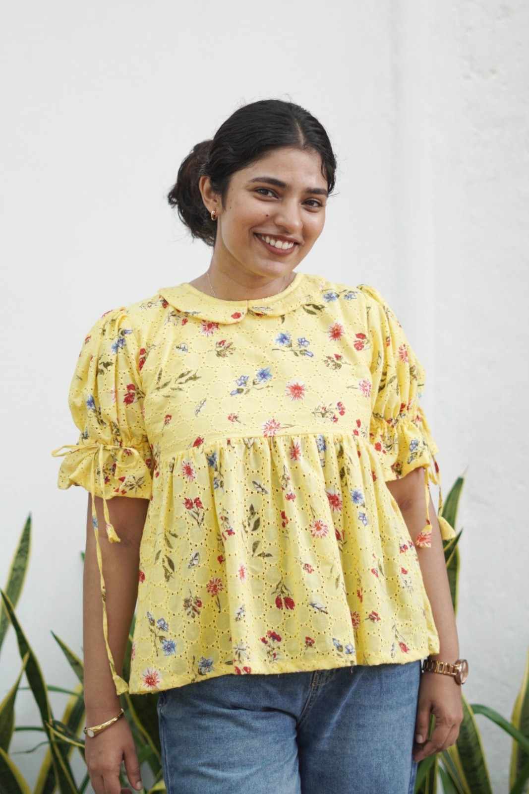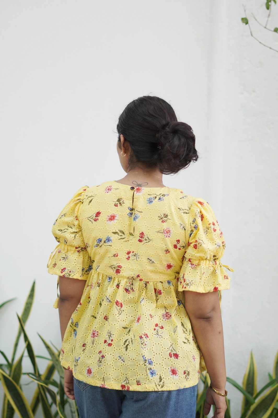 : A refreshing yellow hue paired with tiny florals creates a sweet and vibrant everyday outfit.