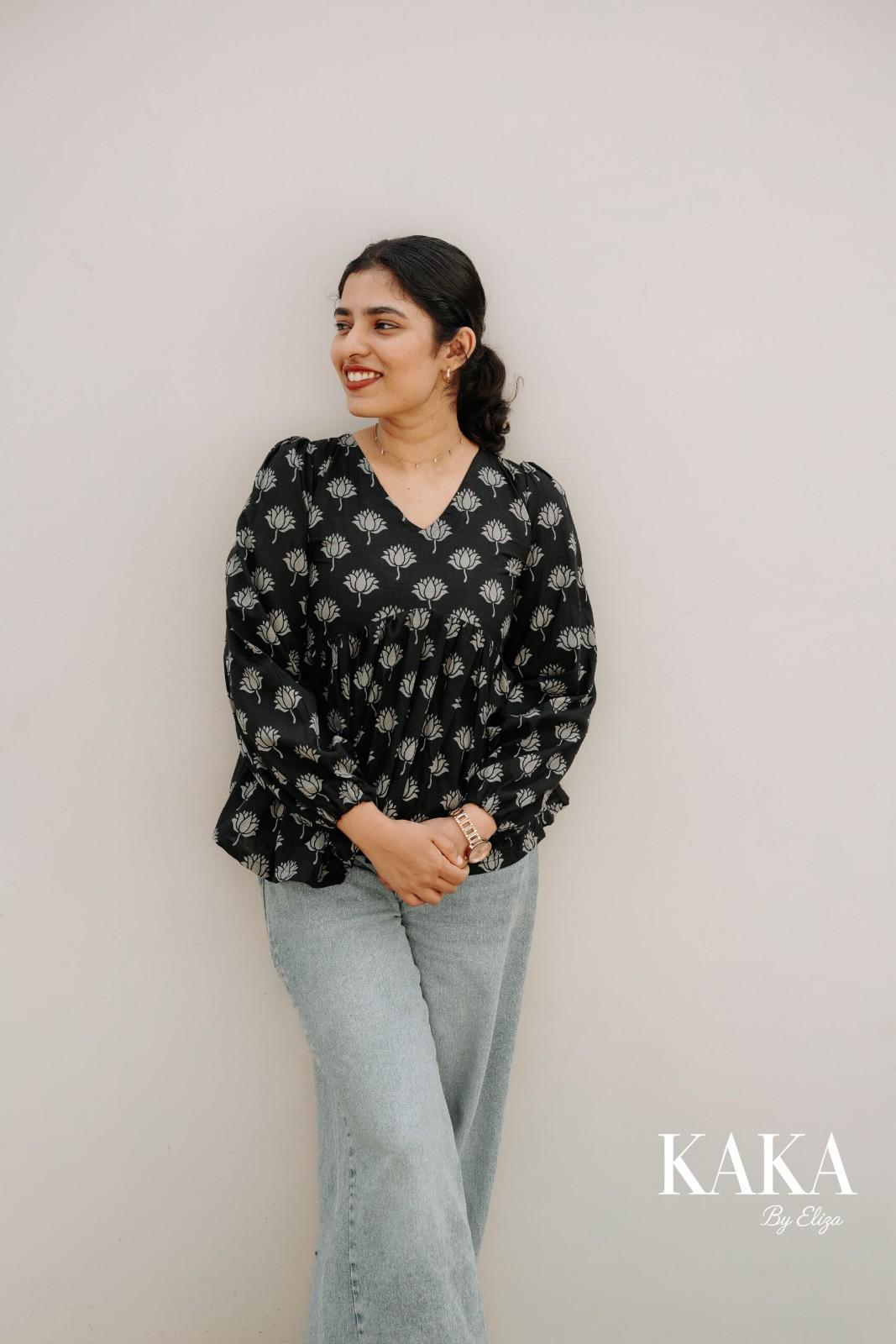 Step into effortless charm with our Noir Bloom top — where soft cotton meets timeless block prints.