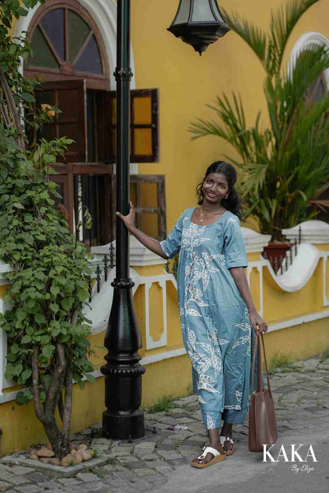Crafted in a soft blue shade with hand-inspired white leaf motifs, this set brings a perfect blend of comfort and style. The relaxed top paired with matching pants creates a graceful, airy silhouette — ideal for everyday wear, travel days, or casual outings.