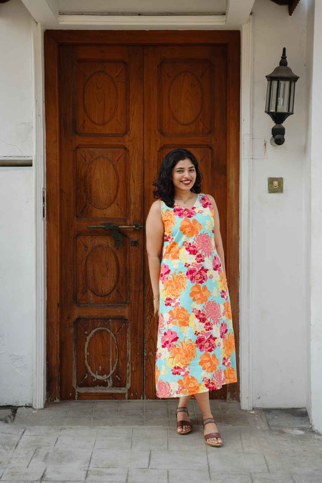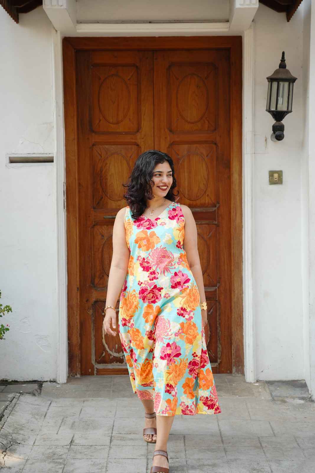 Step into effortless summer style with our Pastel Garden A-Line Dress. Crafted in a soft, breathable fabric, this sleeveless dress features a relaxed A-line silhouette that flows beautifully with every step. The pastel floral print adds a fresh, cheerful charm, making it an ideal pick for warm days.