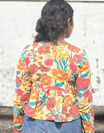 - Sleeves: Full balloon sleeves with elasticated cuffs