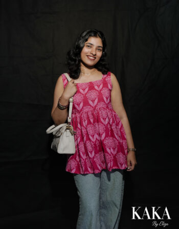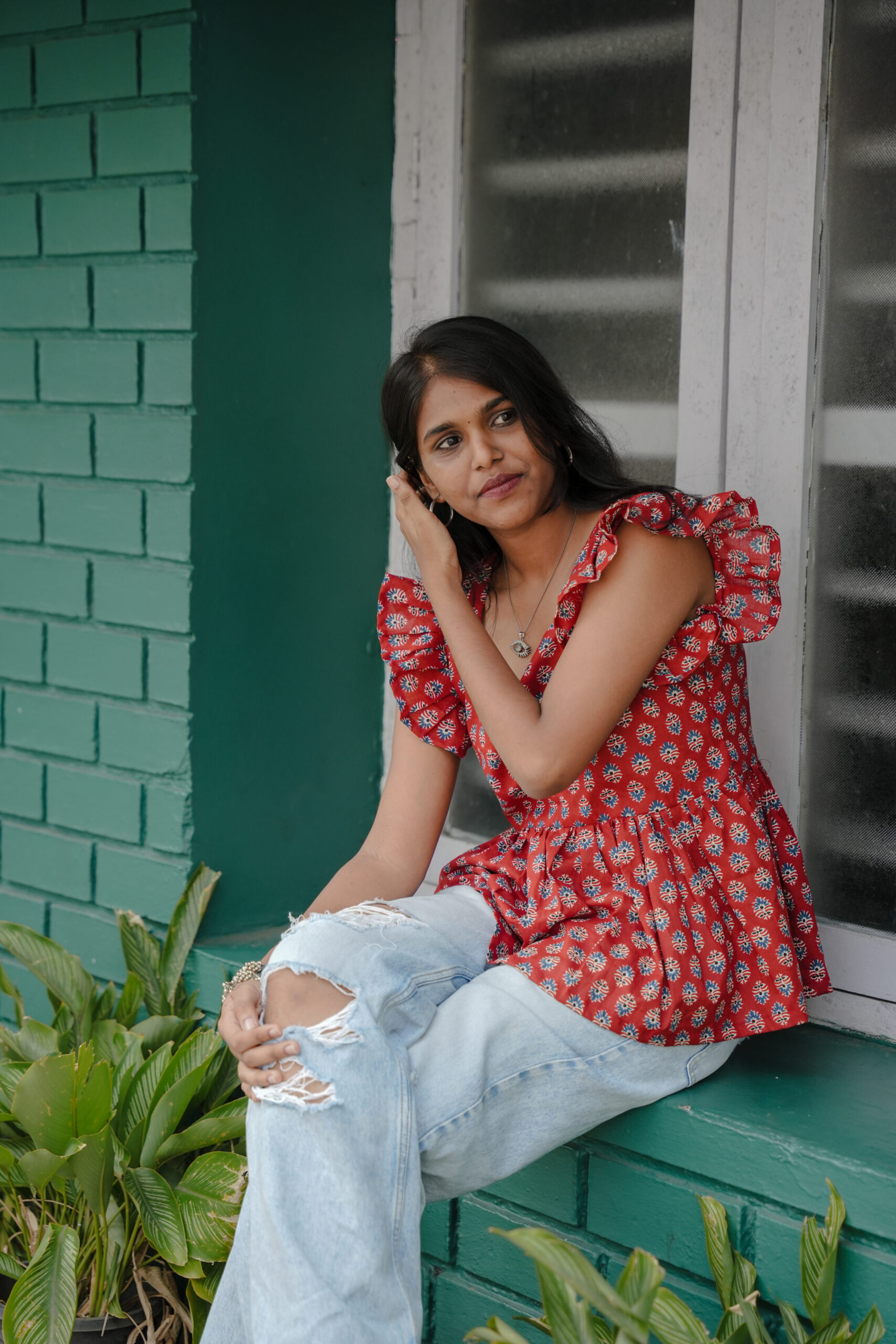 Add a pop of colour to your wardrobe with our Ruby Bloom Peplum Top. Designed with a vibrant red base and delicate all-over floral prints, this top features soft ruffle sleeves and a flattering peplum fit that enhances your silhouette. Perfect for casual days when you want to look effortlessly stylish.