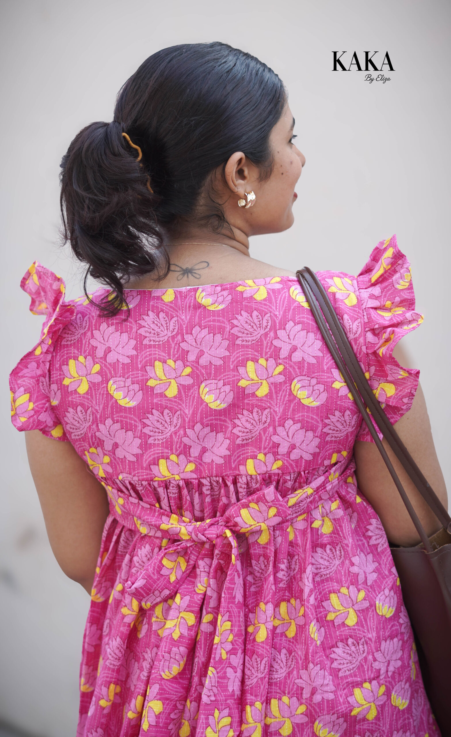 - Neck: Halter neck with back bow