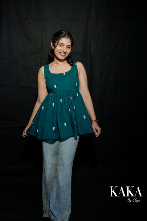 Discover breezy elegance with this teal sleeveless peplum top 🌿✨