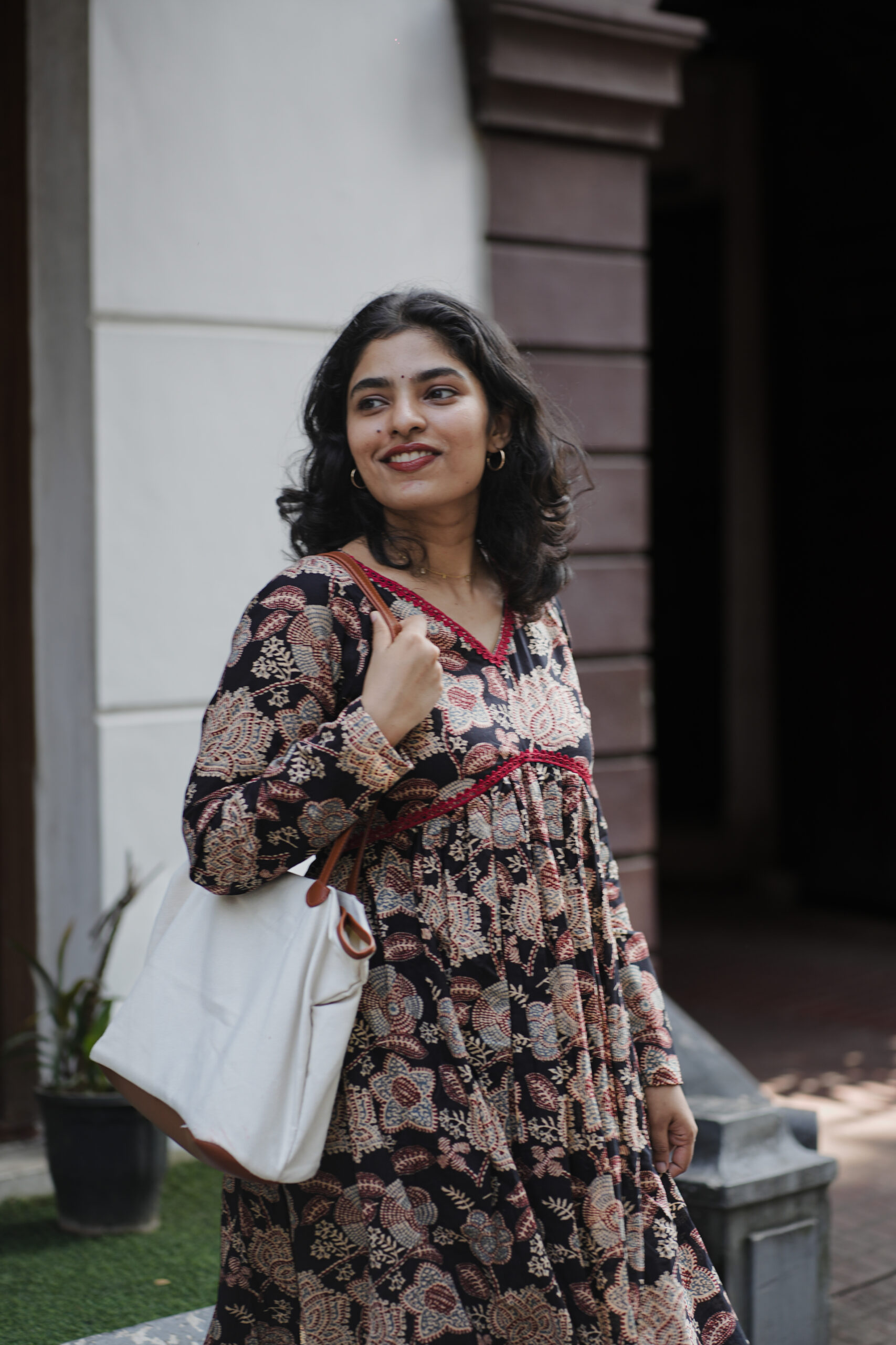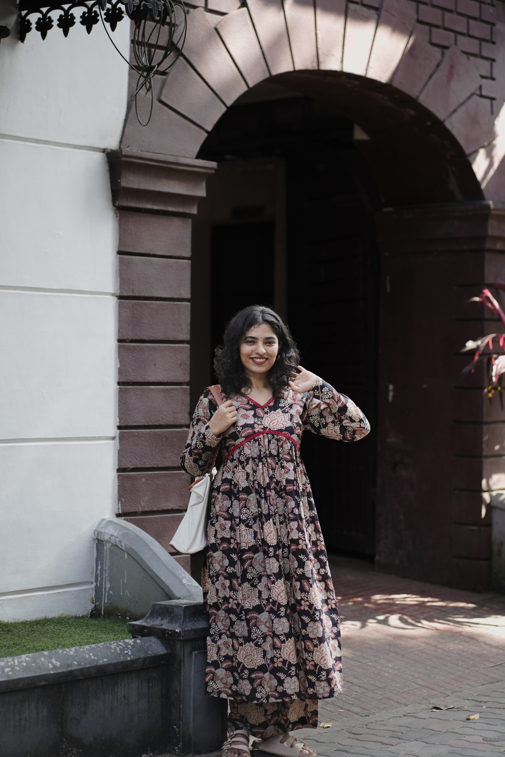 Step into effortless elegance with our Vintage Bloom, a beautifully crafted co-ord set featuring rich floral motifs in deep earthy tones. Designed with a flattering V-neckline adorned with contrast maroon piping, this dress brings a subtle touch of sophistication to everyday wear.